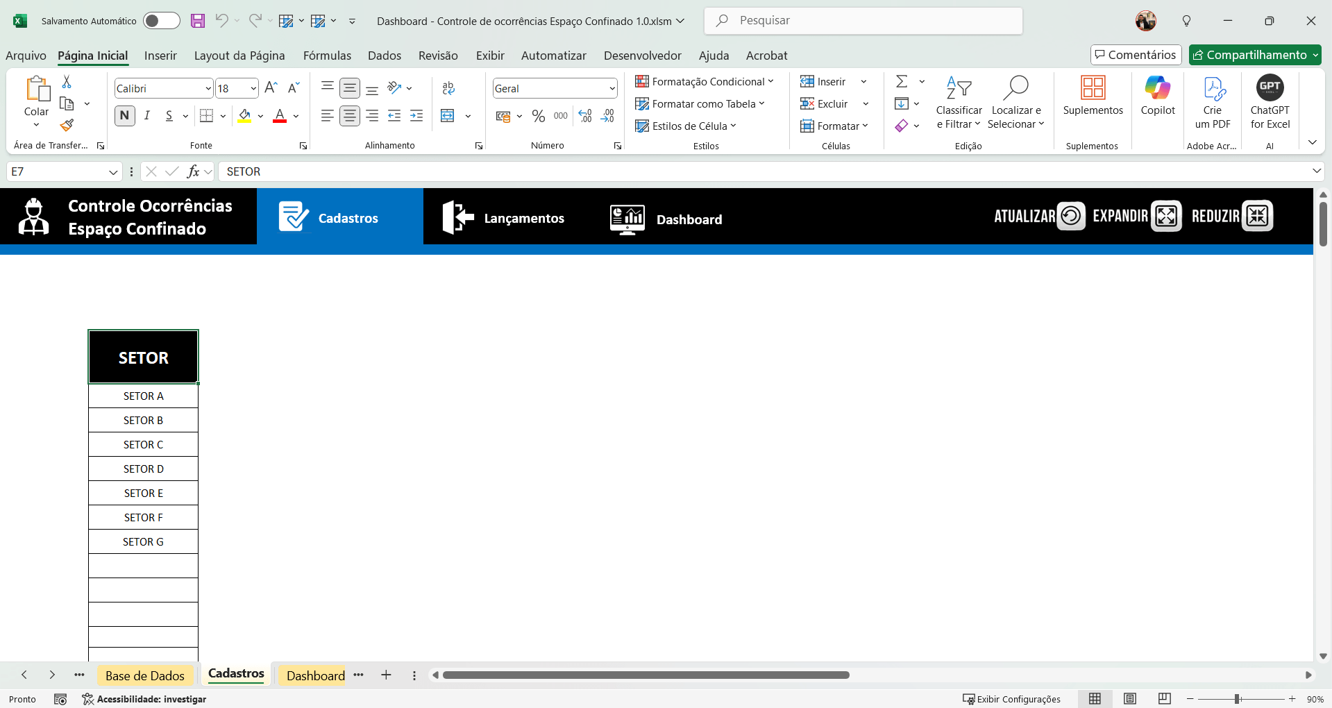 Planilha Controle de Ocorrências em espaço confinado 1.0