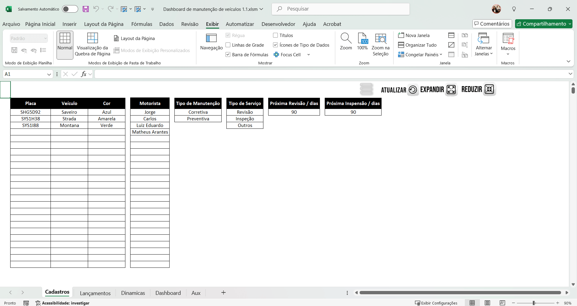 –Placa, veículo, cor, motorista, tipo de manutenção, próxima revisão/dias, próxima inspensão/dias;