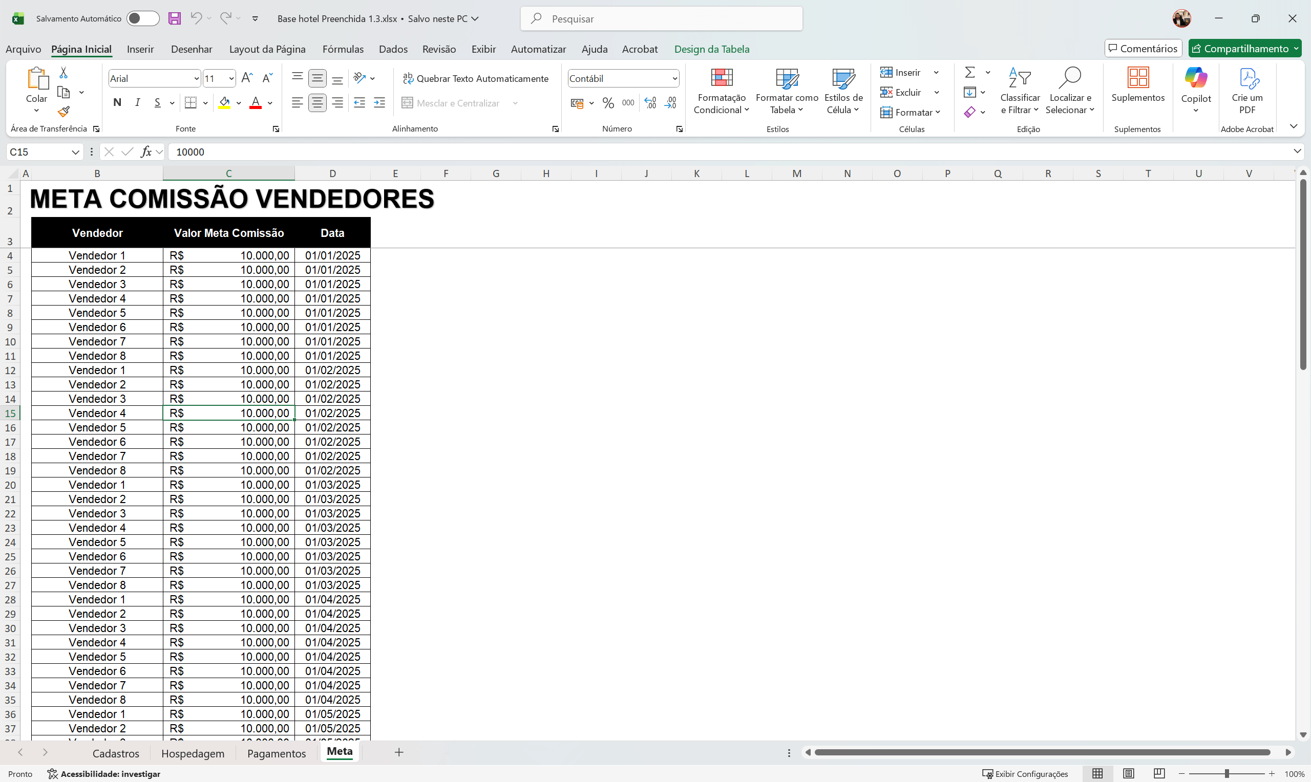 –Dia da semana, dias hospedagem, comissão do vendedor, comissão operadora;