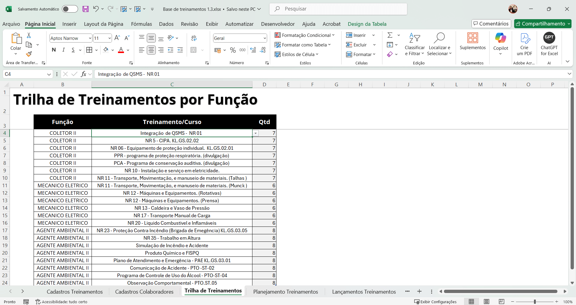 FAÇA O CONTROLE E ACOMPANHAMENTO DE MATRIZ DE TREINAMENTOS DA SUA EMPRESA DE MANEIRA SIMPLES E RÁPIDA.